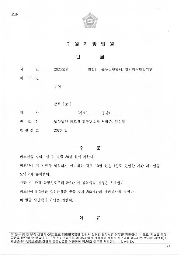 공무집행방해 구속사건 집행유예 성공사례